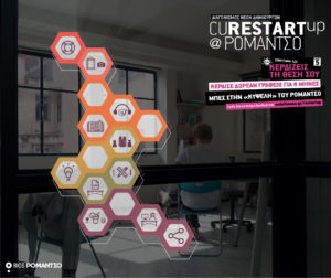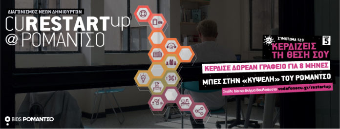 Για ακόμα μία φορά το CU και το BIOS Ρομάντσο διοργανώνουν το διαγωνισμό CU RestartUp @Ρομάντσο, που δίνει τη δυνατότητα σε νέους δημιουργούς να αποκτήσουν δωρεάν επαγγελματική στέγαση, επικοινωνιακή στήριξη & συμβουλευτικές υπηρεσίες για 8 μήνες στη θερμοκοιτίδα του Ρομάντσο.