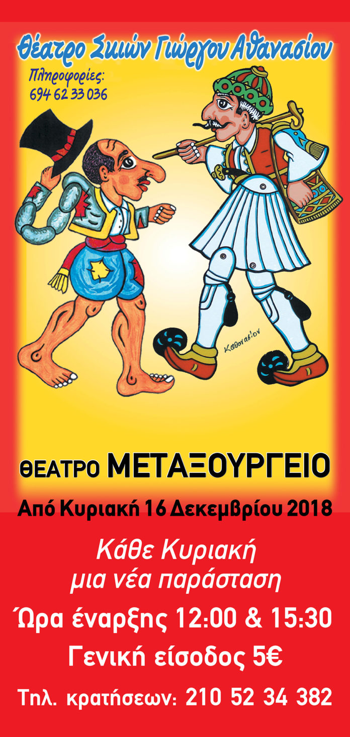 Ο Γιώργος Αθανασίου, ένας από τους καλύτερους καραγκιοζοπαίκτες της νεότερης γενιάς, θα δίνει παραστάσεις κάθε Κυριακή στο Θέατρο «Μεταξουργείο» στις 12:00 και στις 15:30.