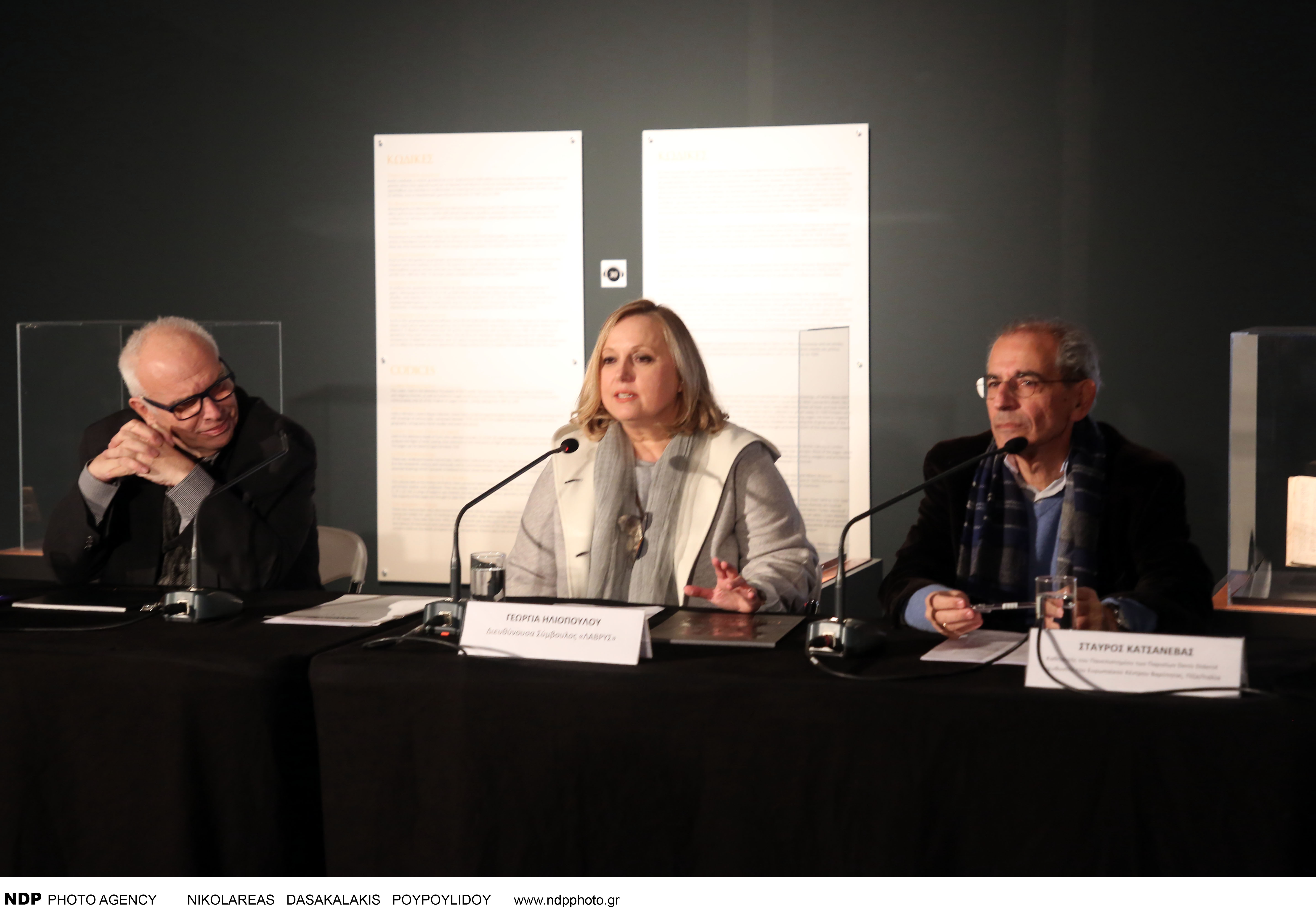 Αρχικά τον λόγο πήρε η Γεωργία Ηλιοπούλου, η οποία αναφέρθηκε σε κάποιες σημαντικές πληροφορίες για το κοινό. Υπογράμμισε πως υπάρχει η δυνατότητα της ακουστικής ξενάγησης αλλά και των ξεναγήσεων με φυσική παρουσία.