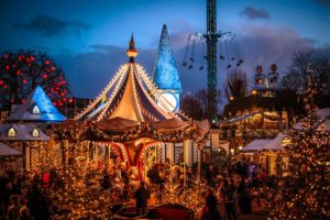 Τα Χριστούγεννα βρίσκουν την Κοπεγχάγη γεμάτη με λαμπερά φώτα, εορταστικό πνεύμα και καφετέριες, όπου ο εφευρετικός σχεδιασμός και η κοσμοπολίτικα στολισμένη Χριστουγεννιάτικη αγορά, σε ταξιδεύει σε άλλες εποχές και μέρη. Χωρίς αμφιβολία η καρδιά των Χριστουγέννων βρίσκεται στους Κήπους Τίβολι με το παλιομοδίτικο αλλά τόσο όμορφα στολισμένο λούνα παρκ.